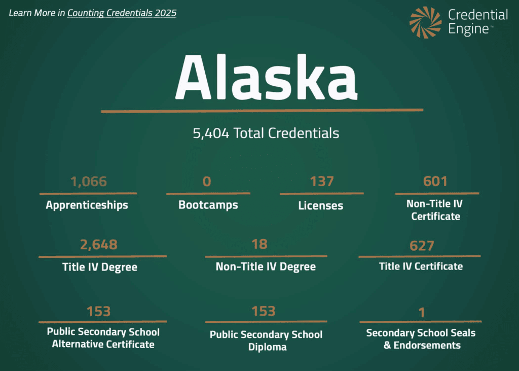 Alaska is not currently a partner with Credential Engine. This information comes from the Counting Credentials 2025 report.