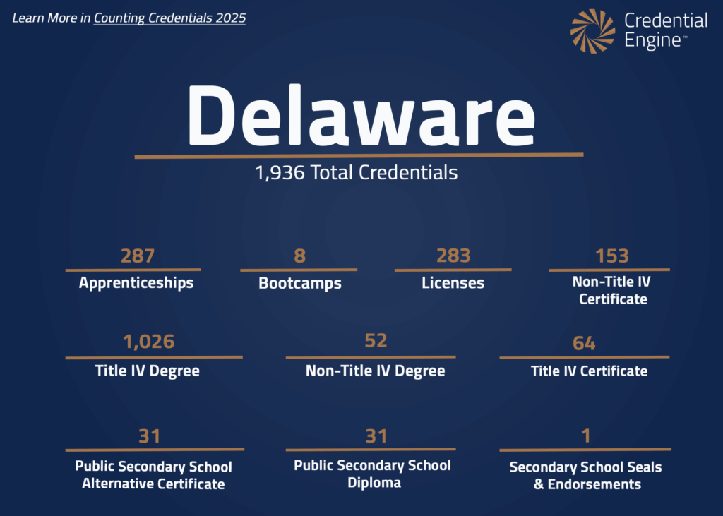 Delaware is not currently a partner with Credential Engine. This information comes from the Counting Credentials 2025 report.