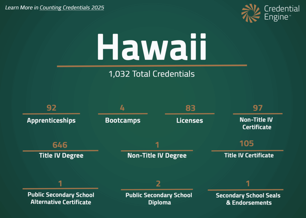 Hawaii is not currently a partner with Credential Engine. This information comes from the Counting Credentials 2025 report.
