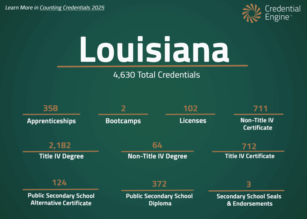 Louisiana’s work with Credential Engine aimed to better serve a growing portion of higher education students who often struggle to complete credentialing programs, with a particular focus on veterans, adult learners and high school students.