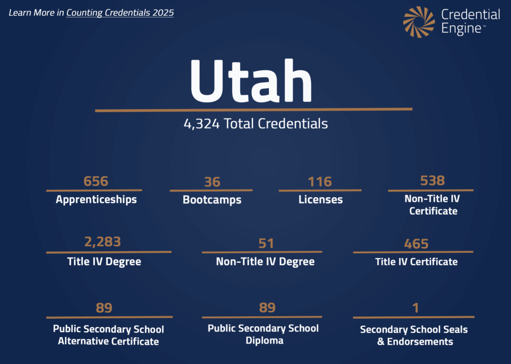 Utah is not currently a partner with Credential Engine. This information comes from the Counting Credentials 2025 report.