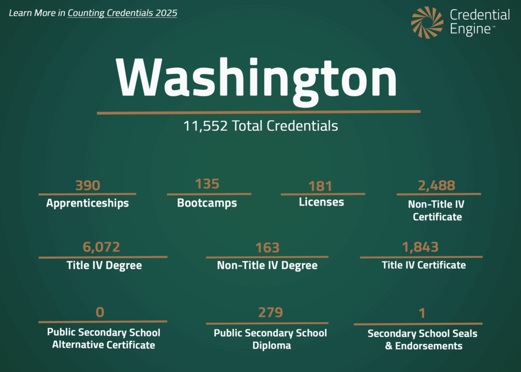 “Students and jobseekers often lack information on the career and earnings potential they can expect from credentials. By partnering with Credential Engine, Washington is able to share the market value of thousands of education credentials and provide a ‘consumer report’ on employment outcomes and earnings. This infrastructure and common language are helping students, jobseekers, and others make well-informed, data-driven decisions about their future.” — Eleni Papadakis, Executive Director, Washington Workforce Training and Education Coordinating Board
